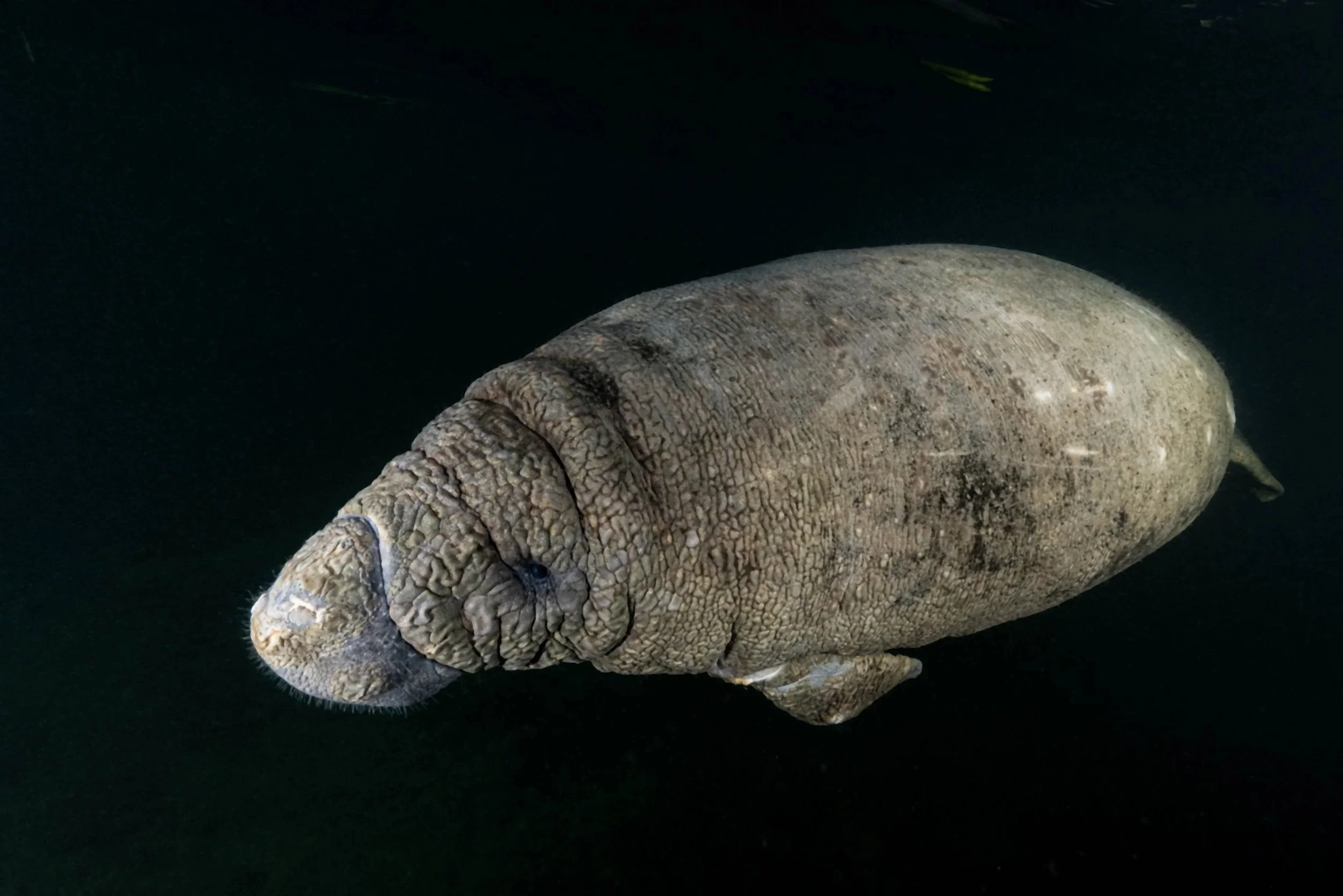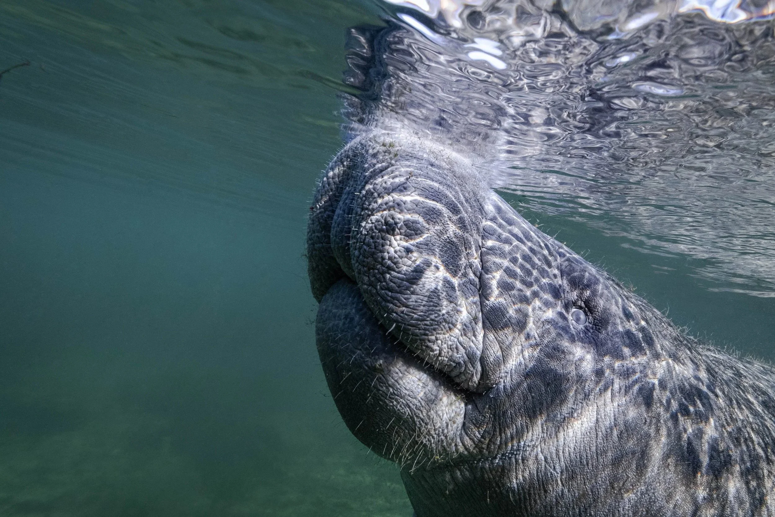The Crystal River/Kings Bay area is the second largest springs group in Florida with more than 70 springs scattered within the 2.5sqkm bay. The water that flows from the springs into the river and the bay is at a constant 22°C throughout the year. Thanks to these springs, the area is the largest natural winter refuge for manatees in the world, hosting over 550 manatees each winter as prolonged exposure to water temperatures below 18°C can be lethal to them. During the summer month the population is reduced to around 30 animals. It is estimated that there are around 9’000 Manatees in Florida.